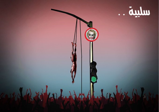 أقدمت مجموعة من المتظاهرين في ساحة الوثبة على ذبح شاب عمره 16 سنة وتعليق جثته على أحد أعمدة الكهرباء في بغداد.
